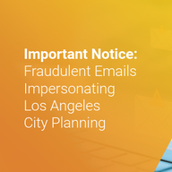 Los Angeles City Planning has been made aware of fraudulent emails being sent from a fake email account: planning.lacity.org@usa.com.